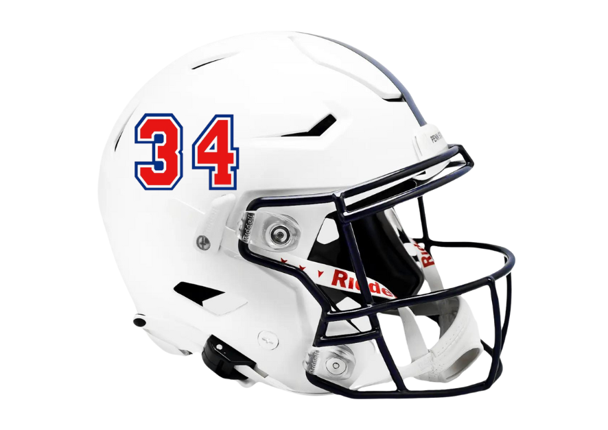 Each Football Helmet Numbers are made of a super high tack adhesive that will conform to any helmet shape and dimension. Our Football Helmet Numbers are coated with a durable 3mil laminate that prevent the football helmet decals from scratching, smearing, or ripping.