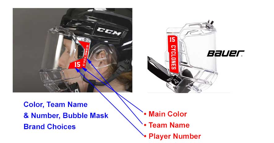 Elevate your game with our Bubble Mask Stickers, designed to combine style and personalization. These premium-quality stickers are crafted to fit seamlessly on selected hockey bubble maska for Bauer Concept3 or CCM FV1 masks.  Our Bubble mask stickers allow you to showcase your unique flair while keeping your team looking good against the competition.