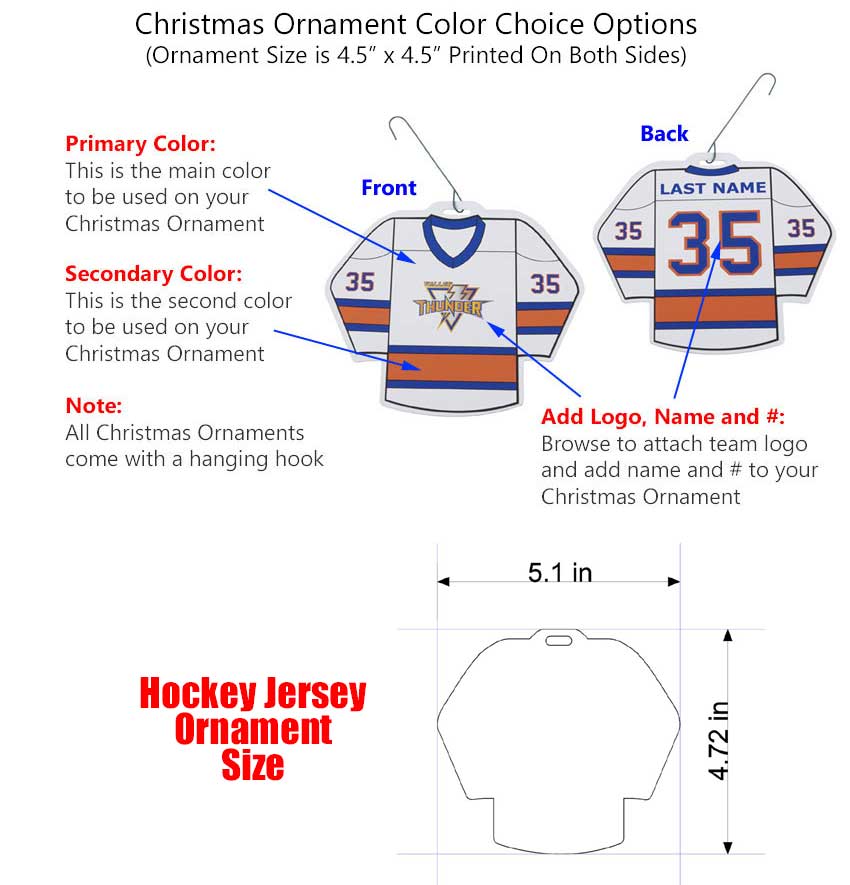 Add your team logo to our custom Ornament. Make any Ornament stand out with your teams colors, logo, name, and number. Every Ornament is durable with vibrant colors. Every Ornament is fully customizable with your team and player information.